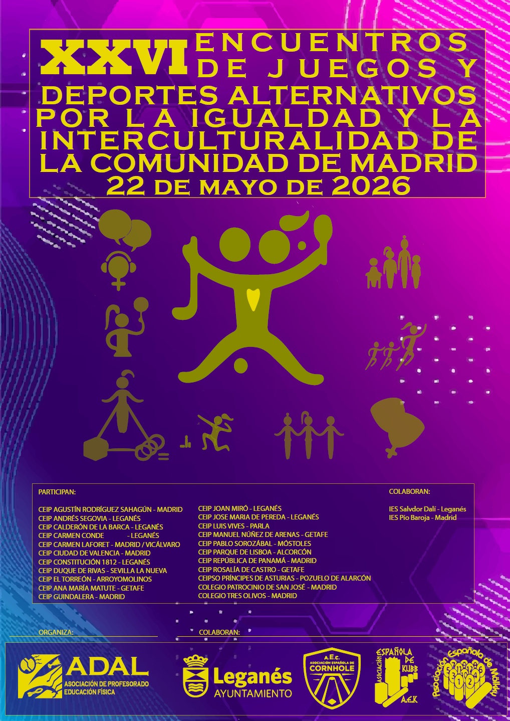 Leer másIII Campeonato escolar de Cornhole Jugando en Familia de Leganés -CEIP Andrés Segovia – Vuelve el cornhole a Leganés este año abierto a las familias de alumnado de 5º y 6º del CEIP Andrés Segovia de Leganés.Aquí tenéis el resumen de la edición de 2024: Será el VIERNES 26 de septiembre de 2025. a las…