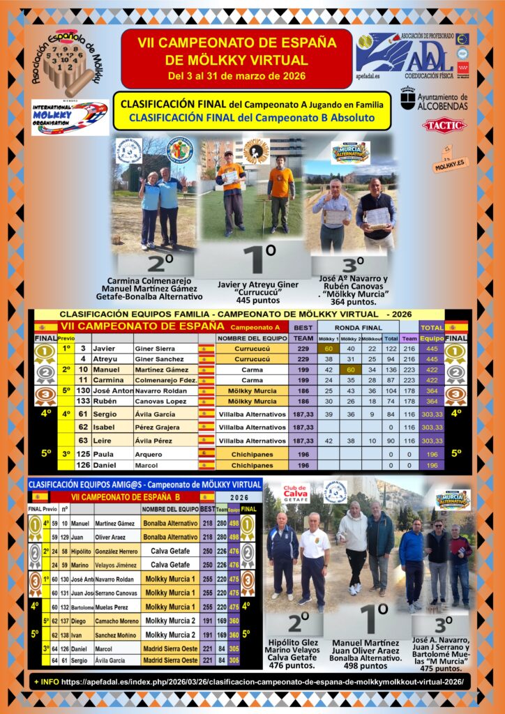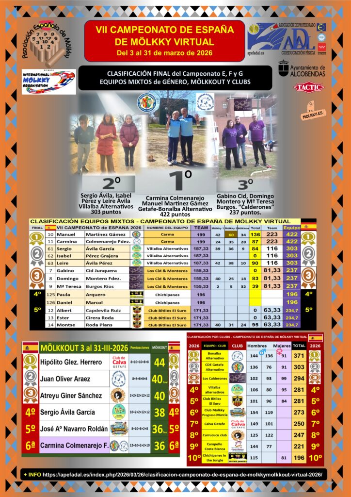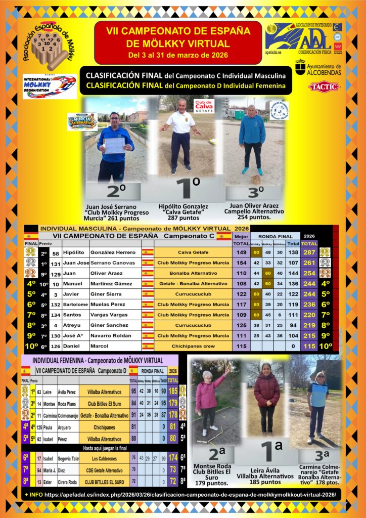 ACTUALIZACIÓN FINAL DE LA CLÁSIFICACIÓN PREVISTA 1/04/2026 A LAS 12h.