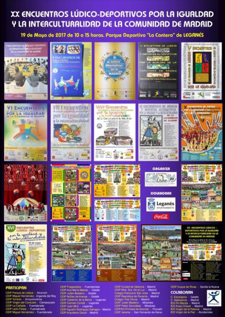 Cada año, las Jornadas de Coeducación física, tienen el punto álgido en los “Encuentros Lúdico-Deportivos por la Igualdad de la Comunidad de Madrid” donde ya han participado más de 42.000 chicas y chicos de la Comunidad de Madrid. La edición veinte se ha realizado en el Complejo deportivo “La Cantera” de Leganés, donde han participado cerca de 2500 alumnos y alumnas de 26 centros correspondientes a 12 localidades de la Comunidad de Madrid.